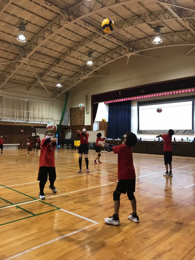 アタック助走は、腕の振りや足の送り方などを繰返し行い、サーブカットでは指導者のサーブをひたすらレシーブをしました。