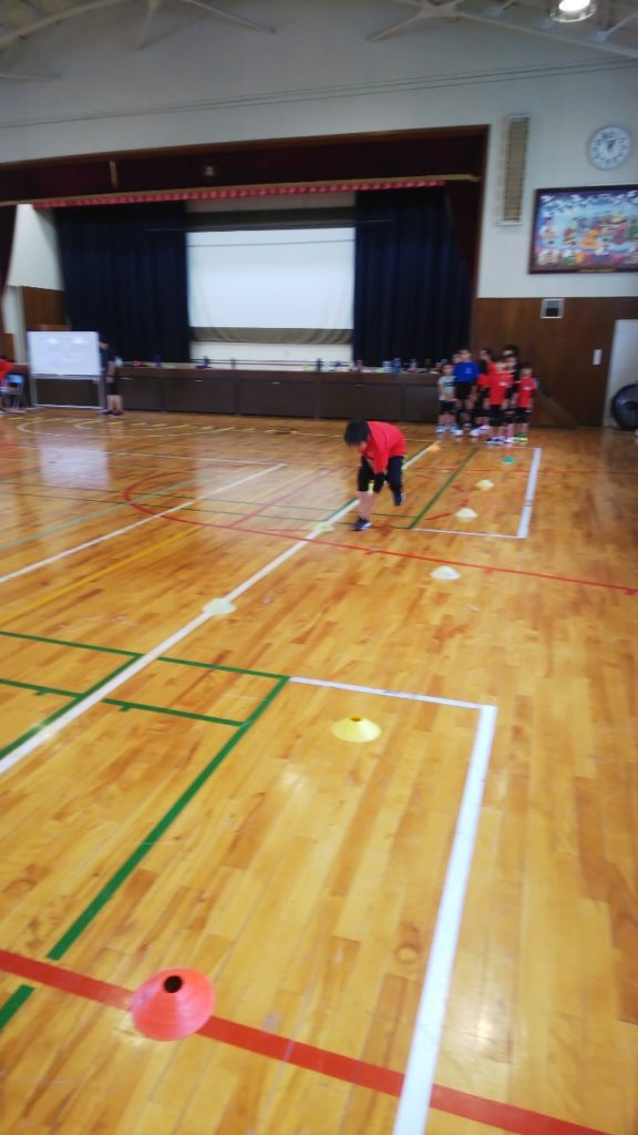 初心者クラスは遊びも入れてボールに慣れる事から!楽しみながらではありますが、怪我に繋がる事や列を横切るなどについては厳しく指導しています。